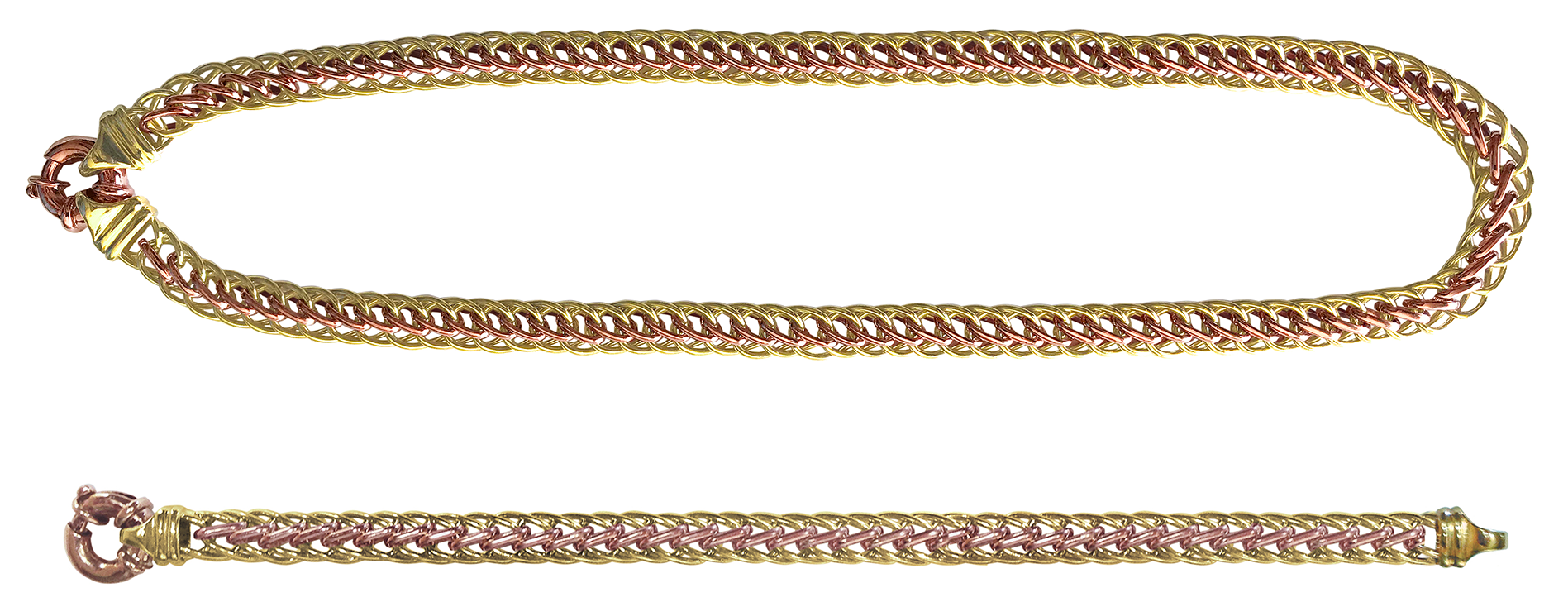 Comment:- Double link (granny chain) with 13mm bolt ring available in Rose & Yellow-Gold.